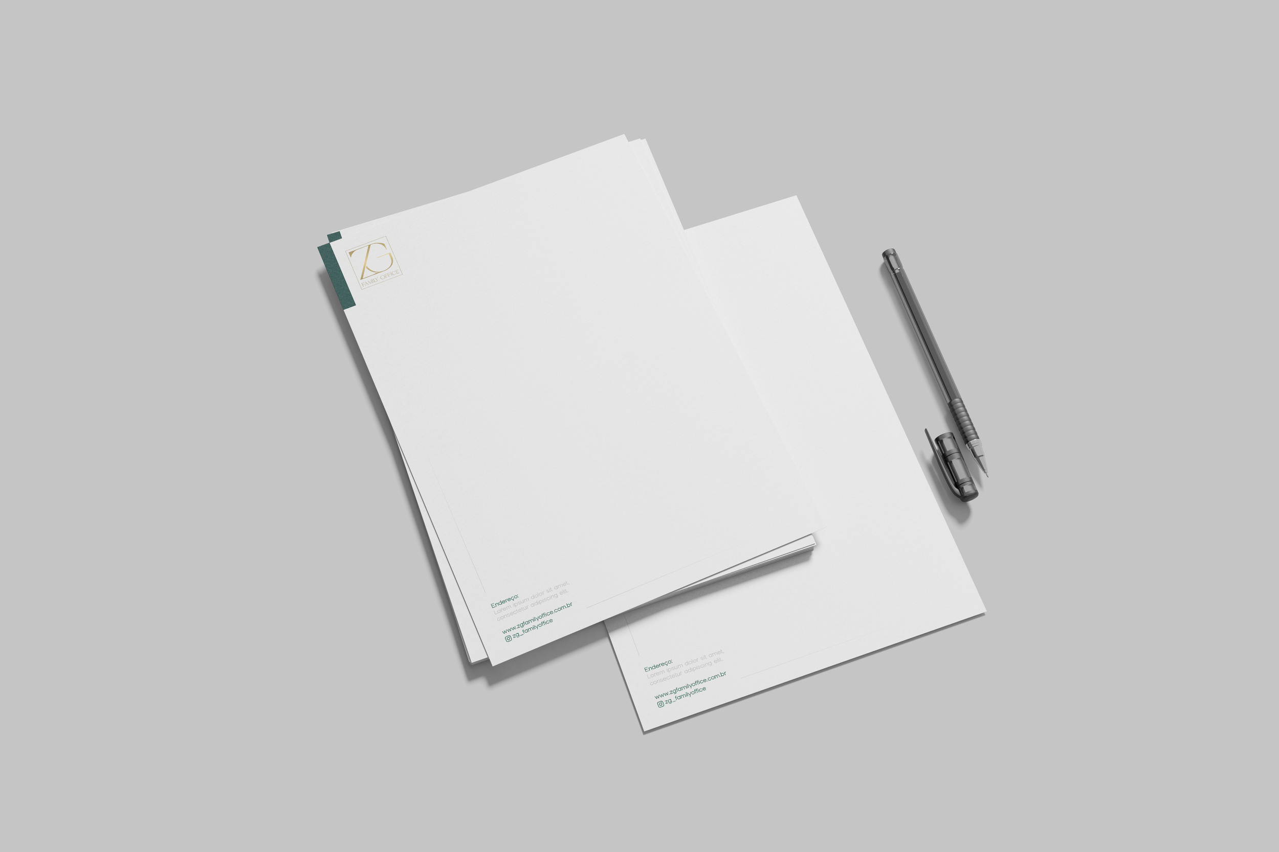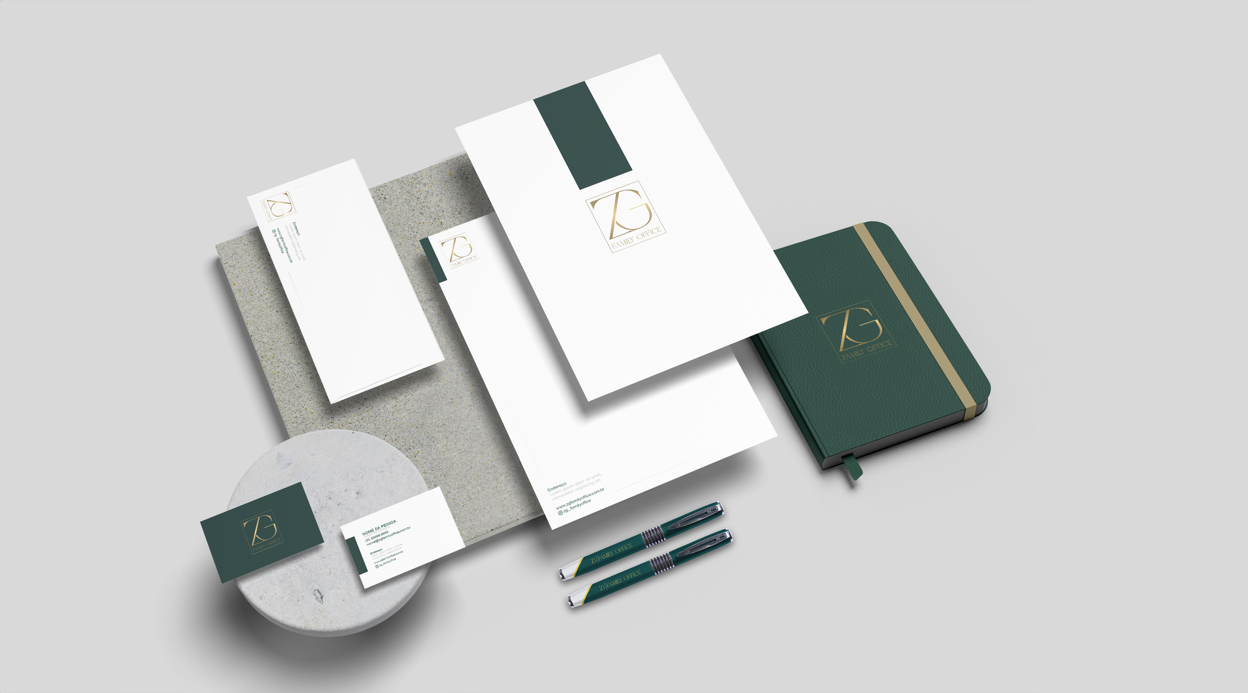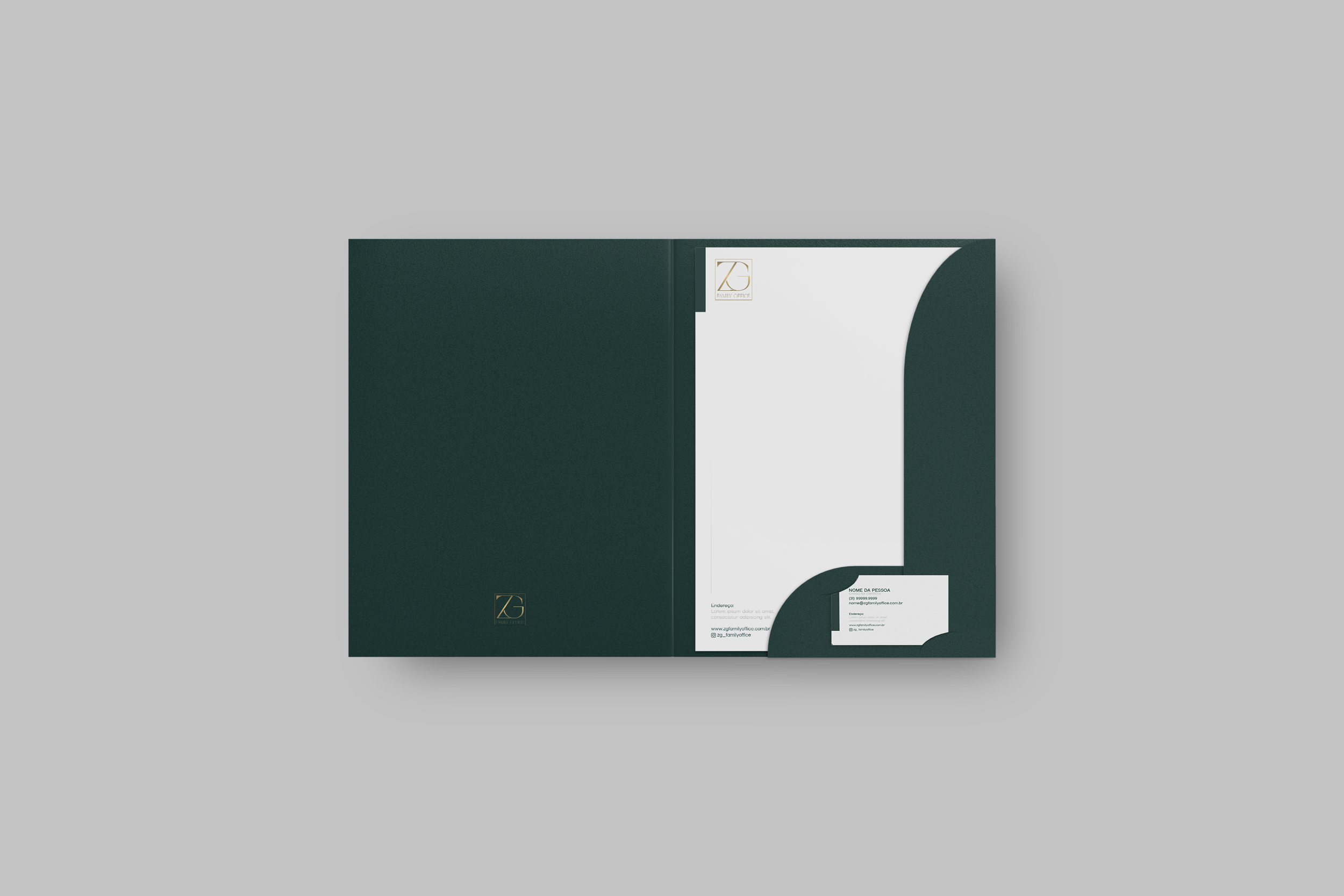 Desenvolvemos para o ZG Family Office uma identidade visual sofisticada e alinhada ao perfil exclusivo do segmento de gestão patrimonial. O projeto envolveu a criação de um logotipo que transmite solidez, confiança e discrição, além da definição de uma paleta de cores e elementos gráficos que reforçam a credibilidade e o profissionalismo da marca.